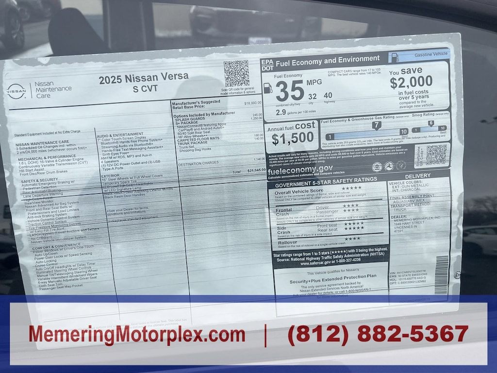 Come in for a quick visit at Memering Motorplex, 1949 Hart St, Vincennes, IN 47591 to claim your Nissan Versa!