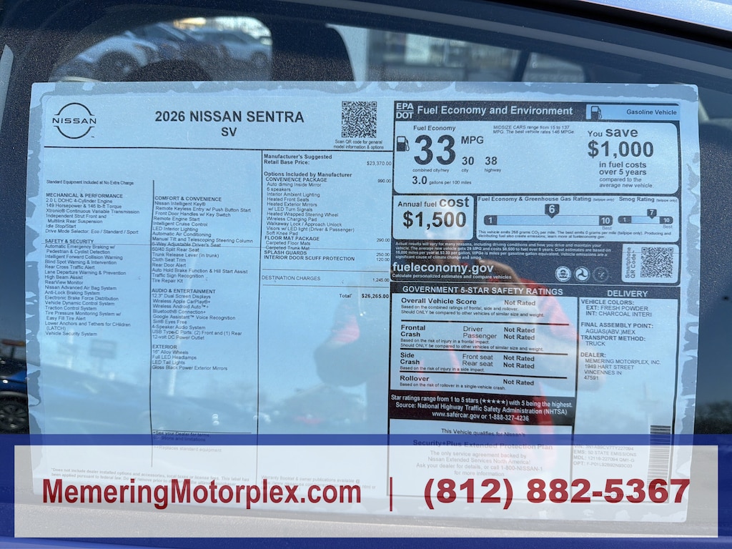 Come in for a quick visit at Memering Motorplex, 1949 Hart St, Vincennes, IN 47591 to claim your Nissan Sentra!